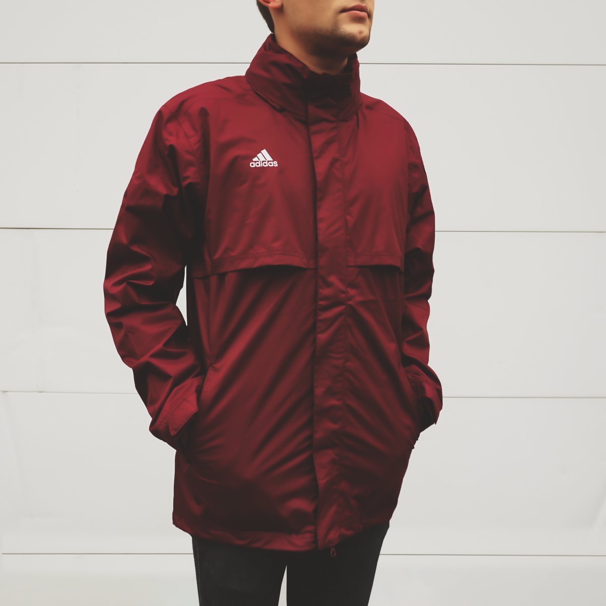 This adidas Men's Scorch Stadium Jacket is thick and durable, protecting you from the rain and the cold. It features a storeable hood on the collar.