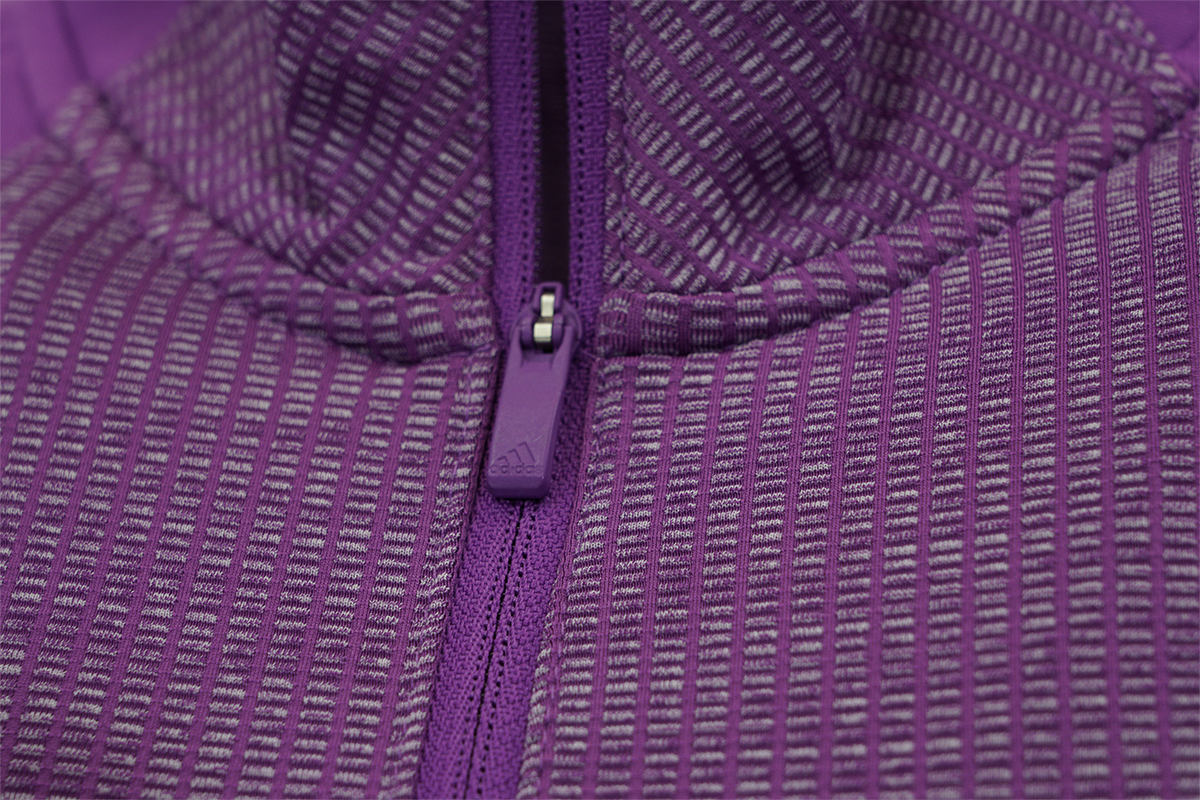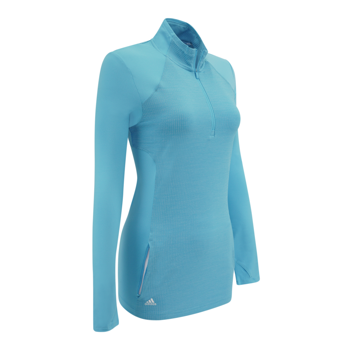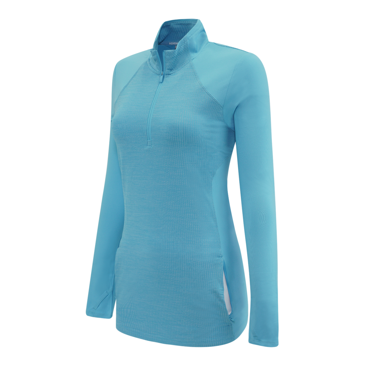 Outsmart the chill to and from the links in this golf jacket. Built with thumbholes on the sleeves for extra coverage, the half-zip pullover is made of stretchy knit stretch for flexibility and versatile all-day comfort. Tonal jacquard details give it a touch of casual flair.