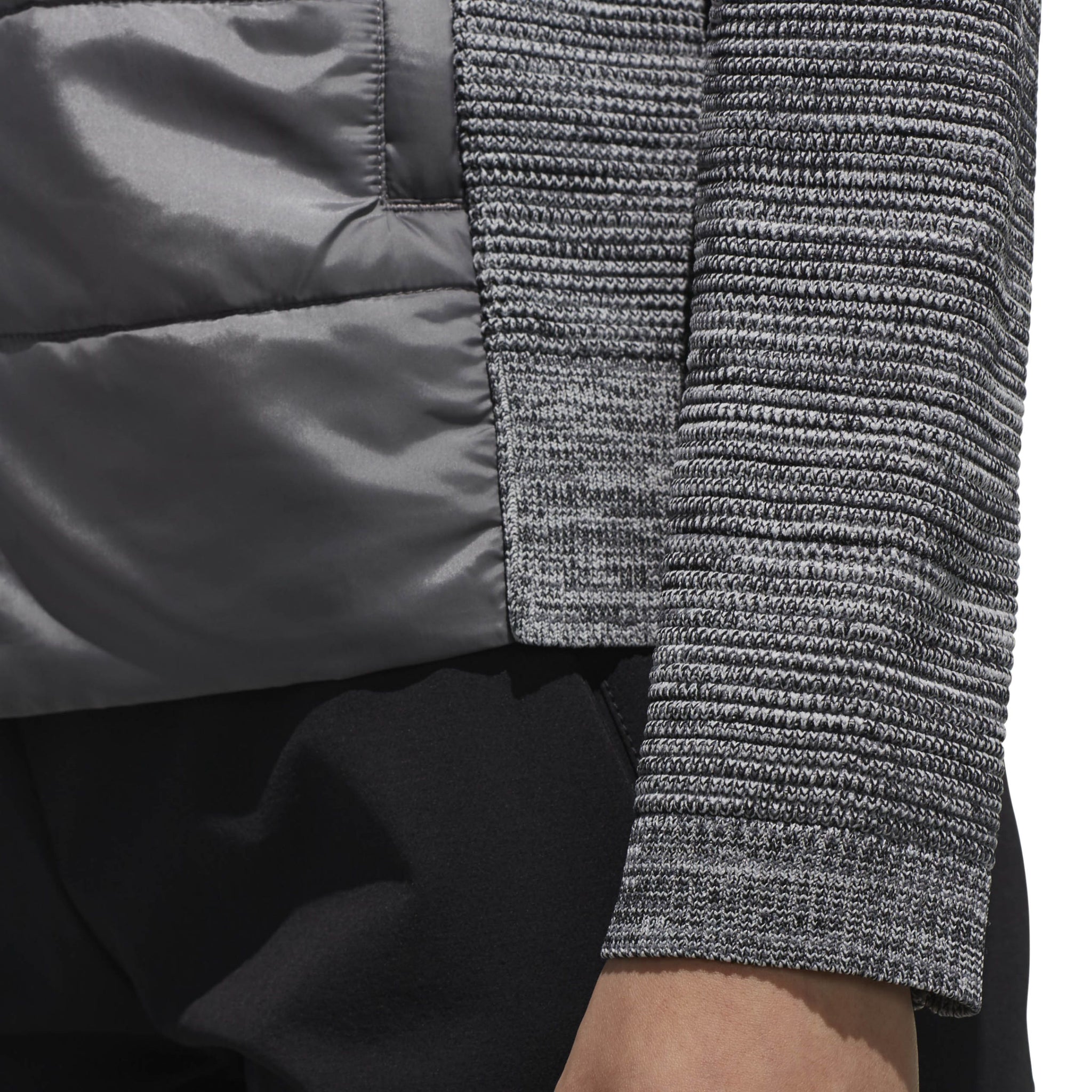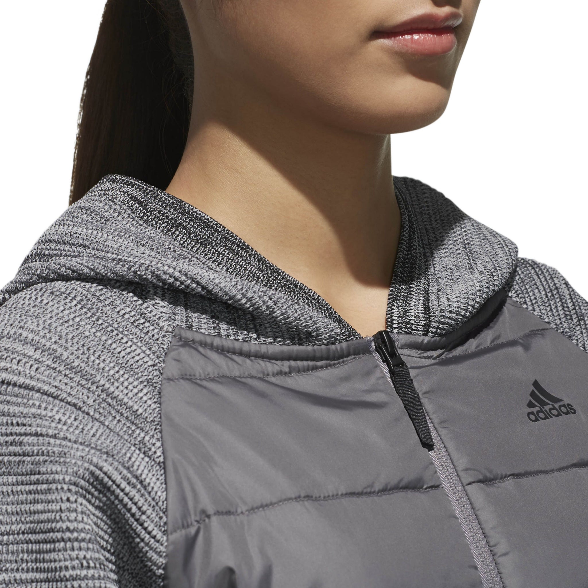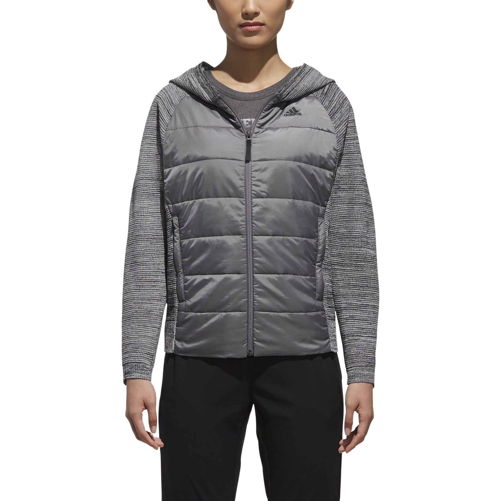 This hooded jacket offers insulated warmth for your core and a hybrid design for easy movement. The front is lined and insulated while the back and arms feature a knit build for natural movement and breathability. Two zip pockets let you keep your essentials close and secure.