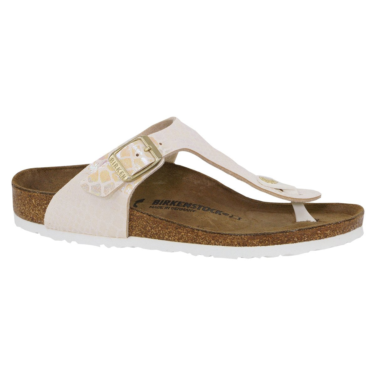 The Gizeh model is our classic thong sandal. For the "pull-up” design, the high-quality Birko-Flor is treated to create a leather-like surface texture with a slight two-tone effect. This understated summer shoe can be worn to a variety of occasions, with the BIRKENSTOCK footbed supporting the natural rolling motion of the feet. For 1/2 Size order a size up. Size N = Narrow Fit. For reference a Birkenstock Size 40 is Size 9 Women or Size 7 Men.