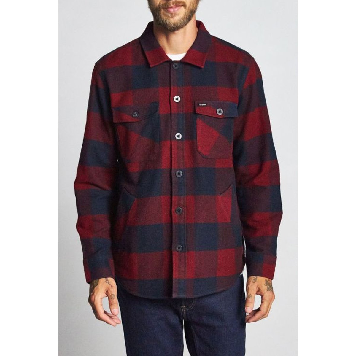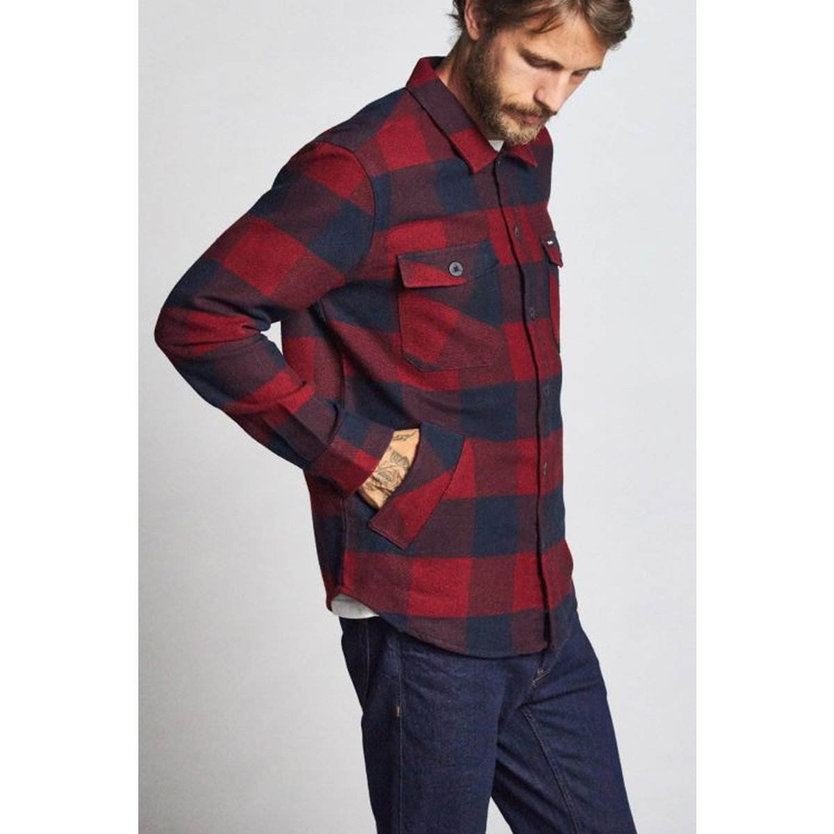 A long-sleeved button shirt made in cotton blended yarn-dyed flannel fabric with Taffeta details and a custom softener wash. It features two chest pockets, waist pockets, adjustable sleeve cuffs, and a Brixton woven label at pocket