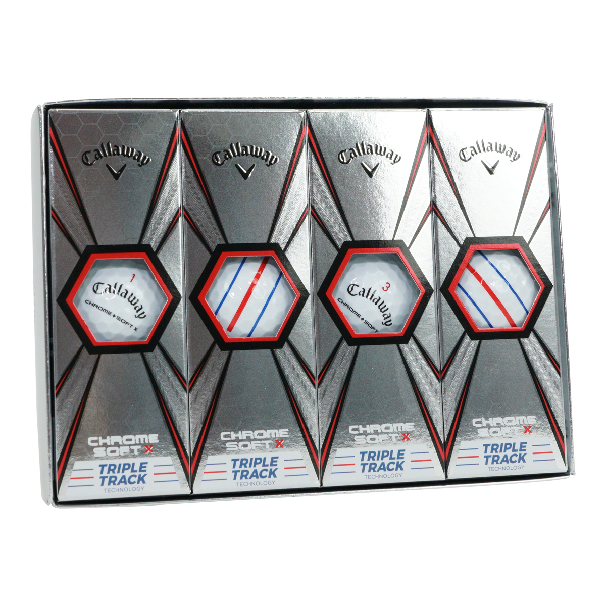 Product FeaturesChrome Soft X Triple Track Golf Balls combine Tour-proven distance and performance, unparalleled feel, exceptional mis-hit forgiveness, a groundbreaking Graphene Dual SoftFast Core and our new Triple Track Technology.