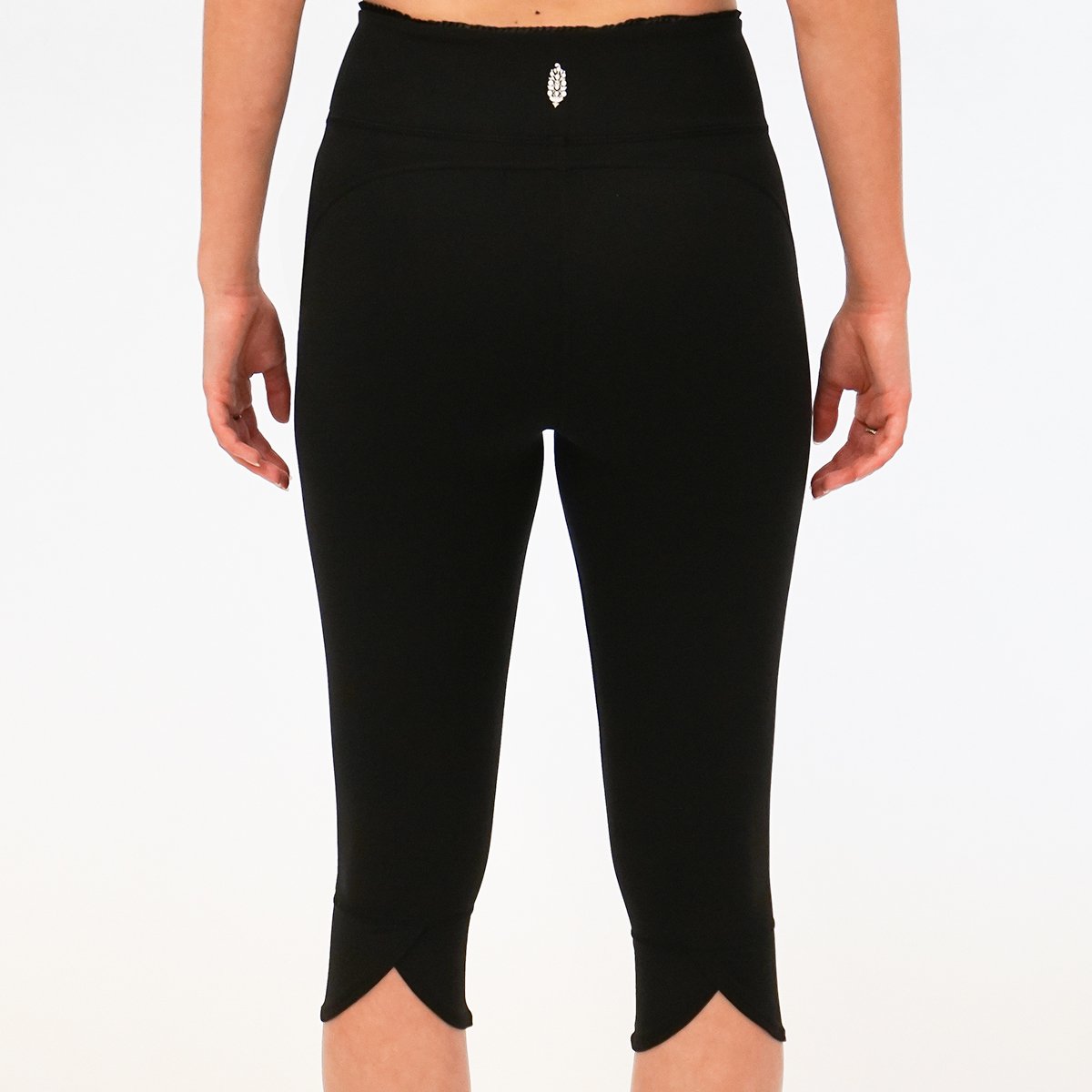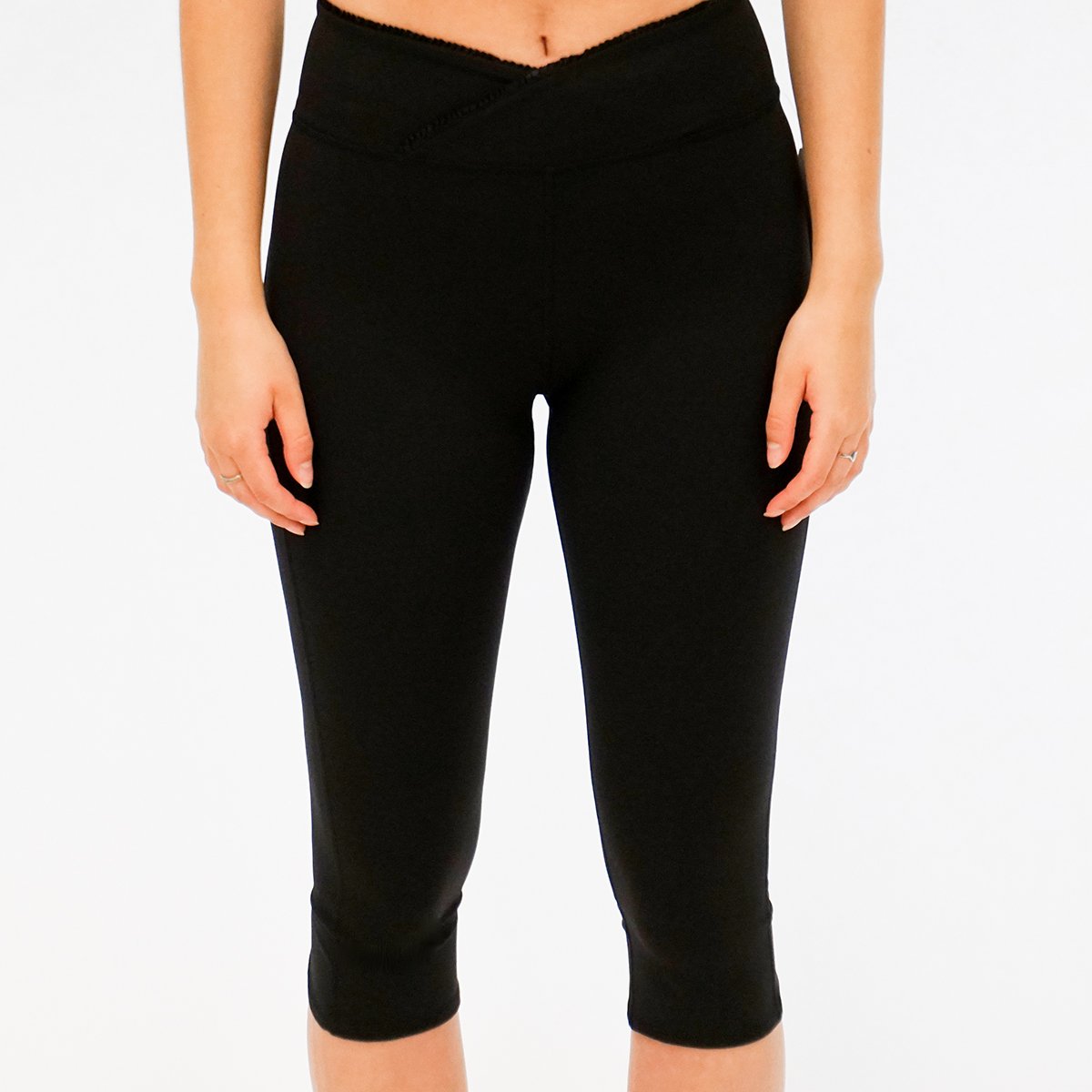 Add a femme touch to your workout look in these mid-rise leggings featuring a cropped design with ruffled details and surplice accents on the waistband and ankles.