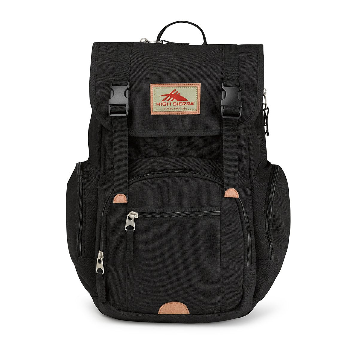 The High Sierra Emmett Backpack features a large, multi-compartment design, Integrated TECH SPOT tablet sleeve (12.5 x 11 x 0.75 in), large gusseted front pocket, adjustable draw-string access under protective lid, and multiple accessory pockets for additional storage. It also has padded shoulder straps, primary padded back panel, and large zippered side pockets can easily hold a water bottle or other accessories. It also has convenient grab handle, core organizer and key fob with adjustable front compression straps and suede touchpoints.