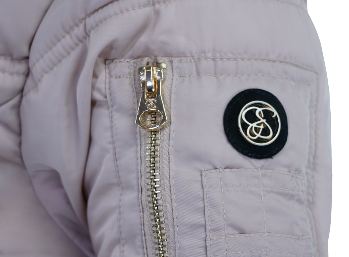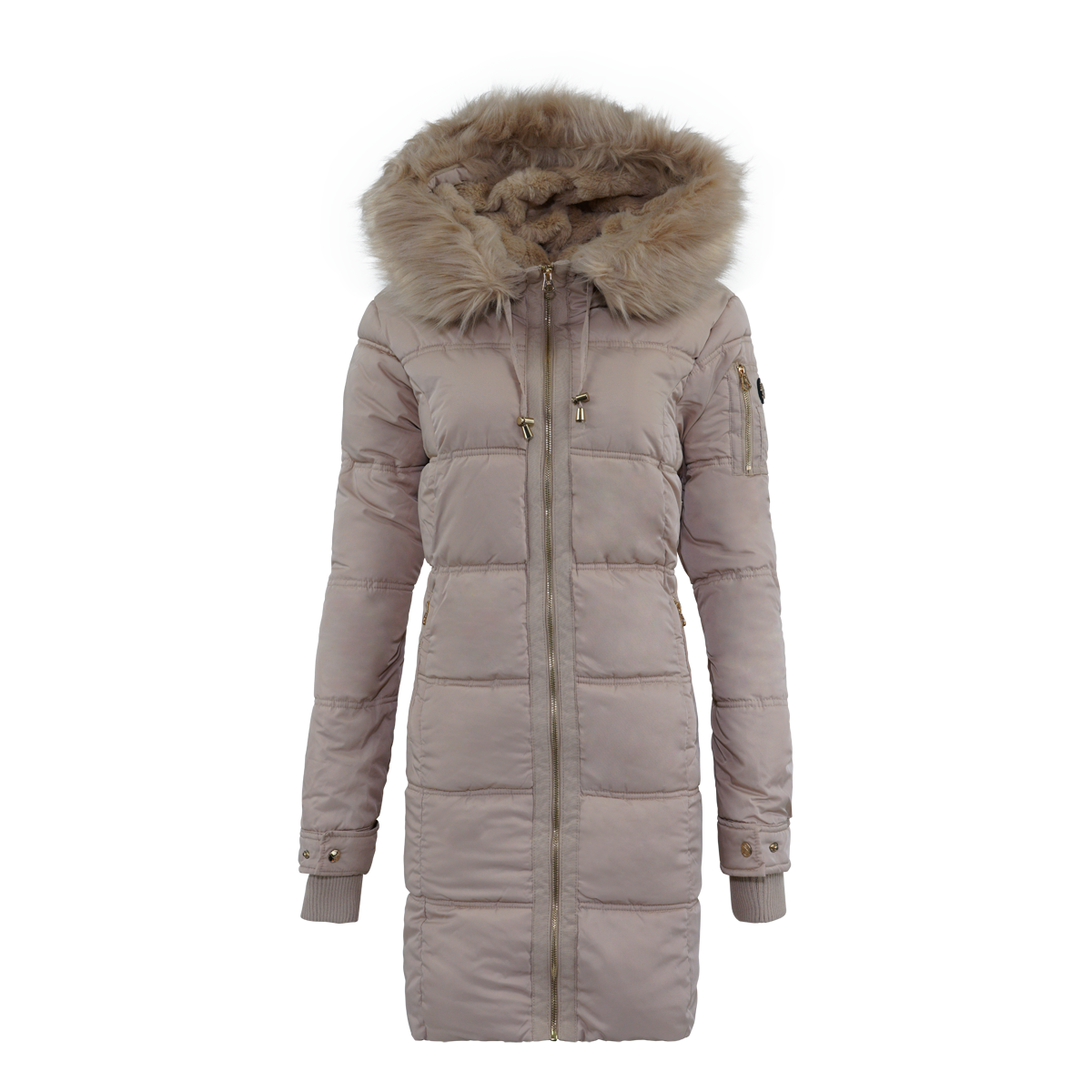 Jessica Simpson Women's Fur Trimmed Sherpa Lined Quilted Puffer Jacket Champagne S