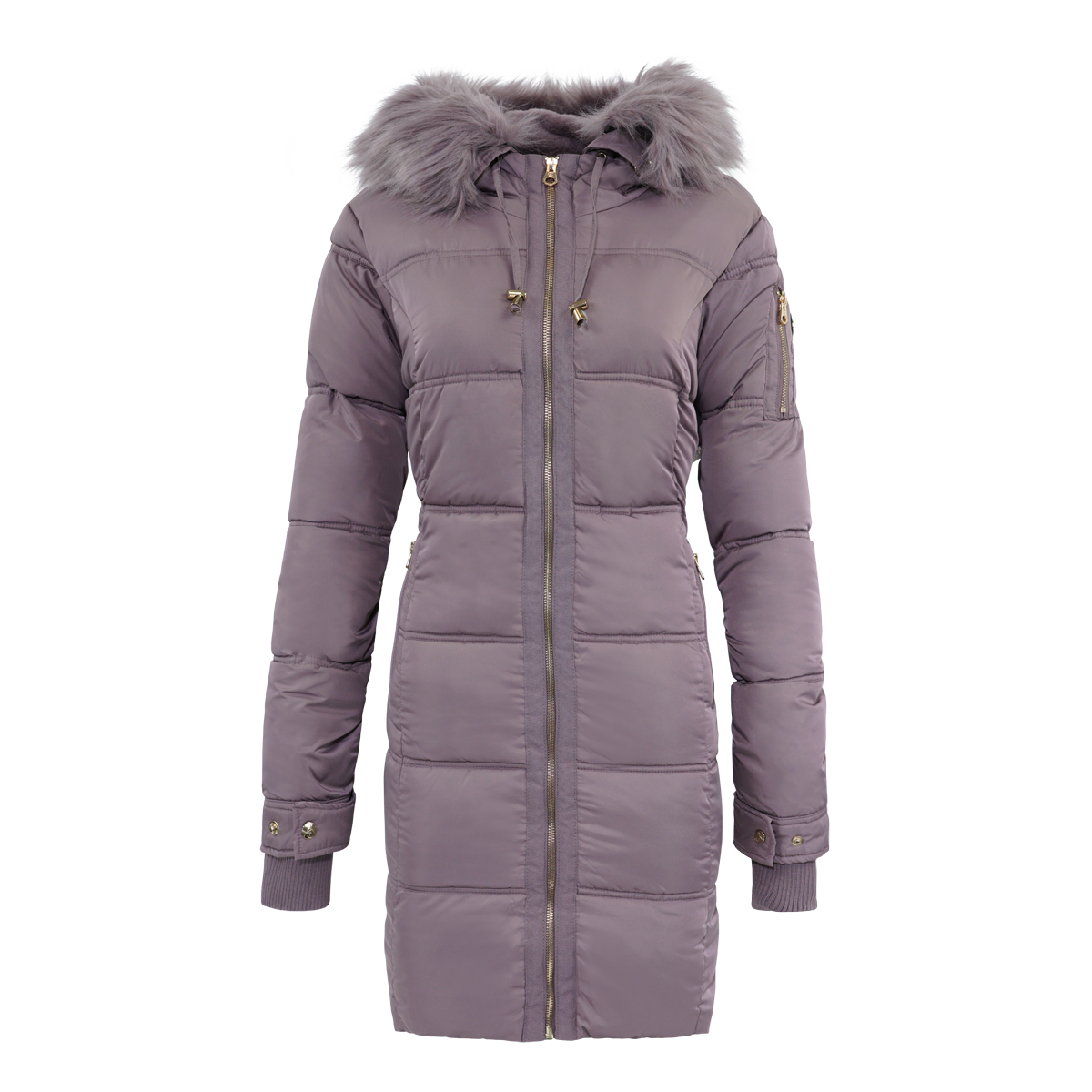 Opt for chic and unique style this winter with this puffer coat! The quilted design features a faux fur trimmed hood that you'll love to show off. Silky lining and insulation ensures a warm wear.