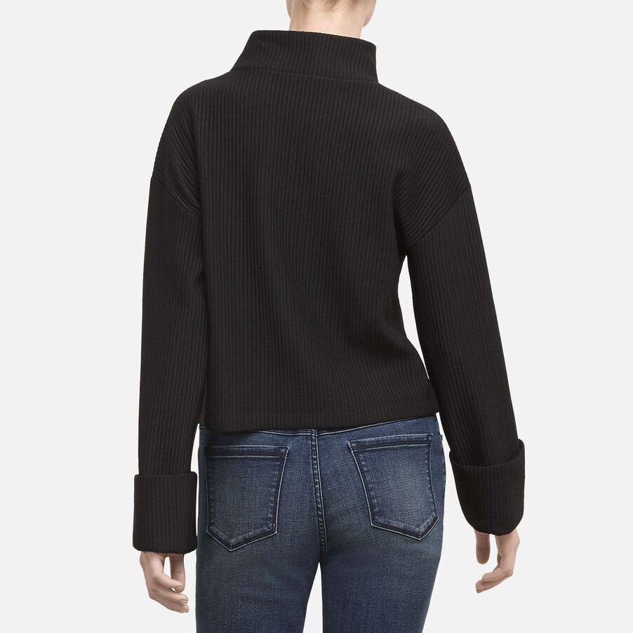 A softly textured long-sleeve mock neck top adds essential style and comfort to your wardrobe.