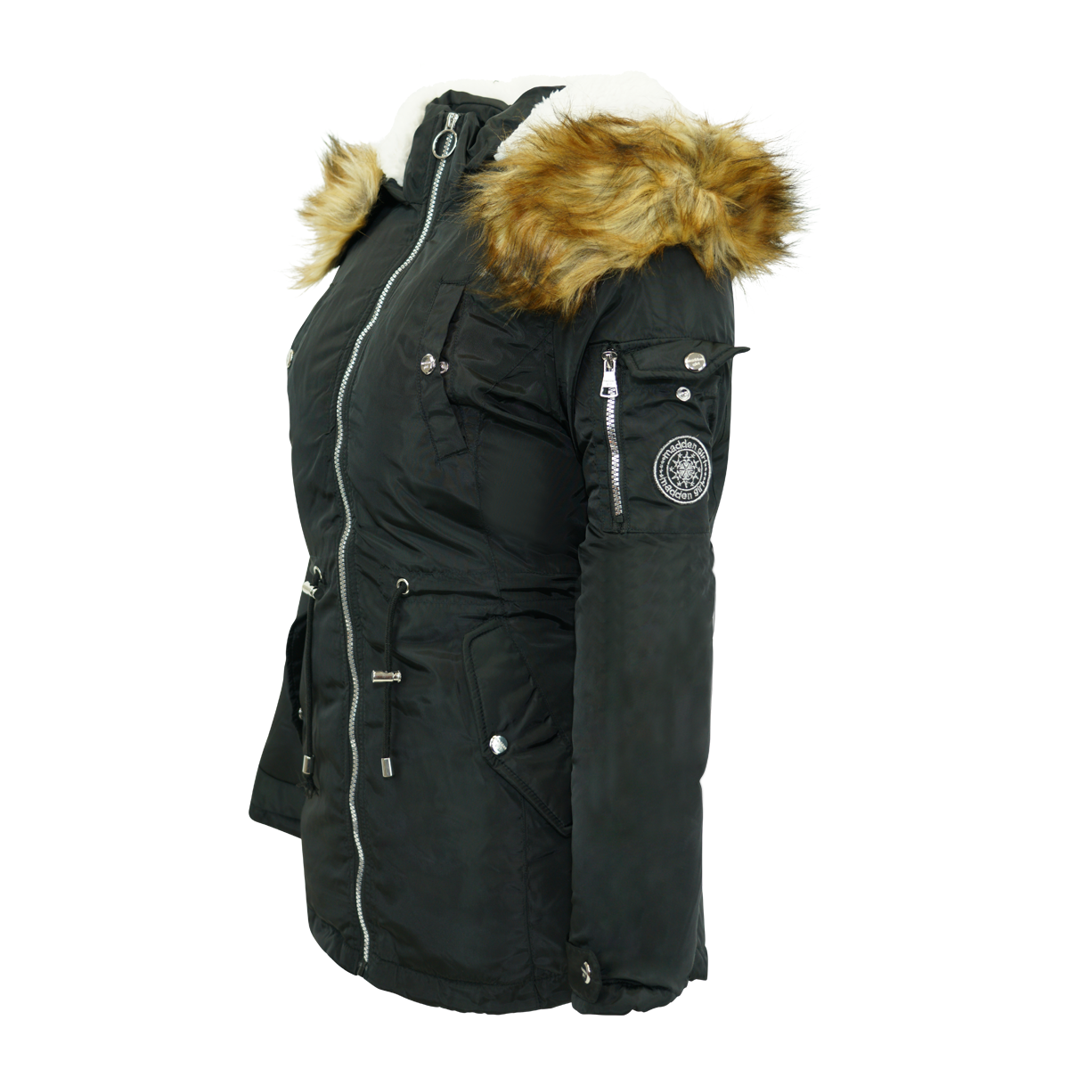 The Madden Girl Women's Fur Sherpa Hooded Jacket keeps you warm and toasty with faux fur around the hood and sherpa wool inside the hood.