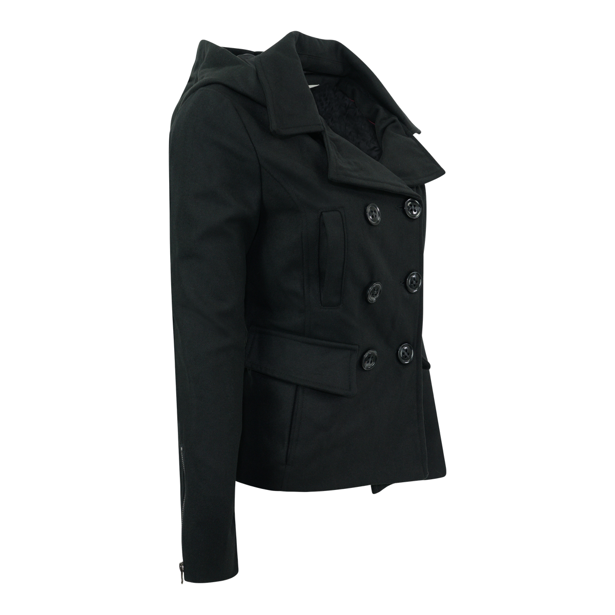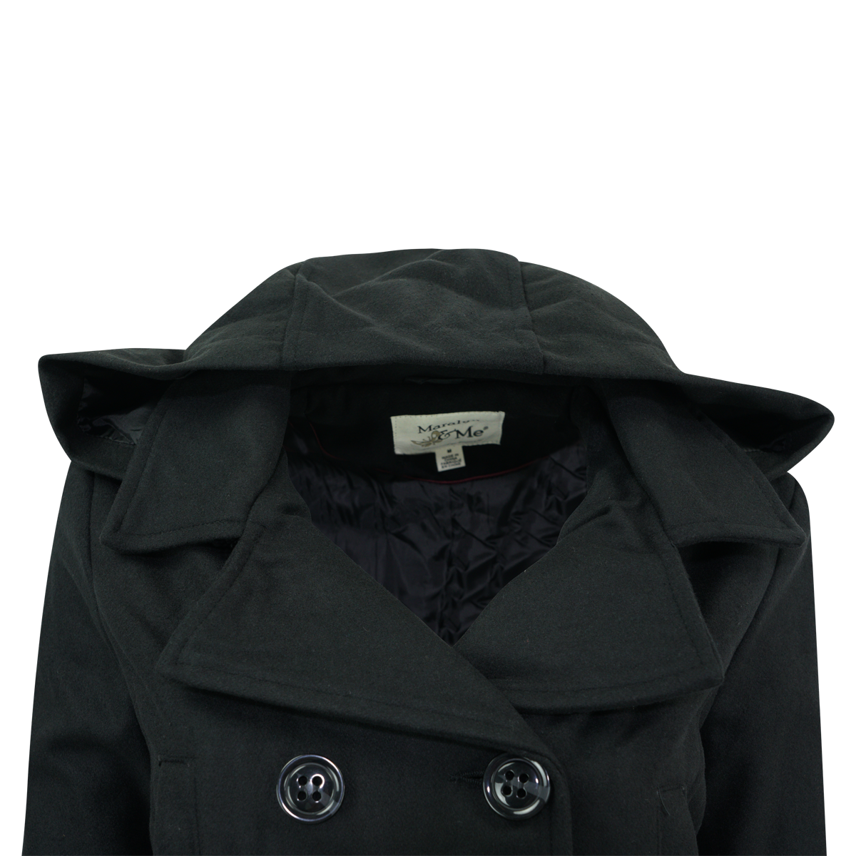 This peacoat by Maralyn & Me features a detachable hood and zippered cuffs to adjust to fit.