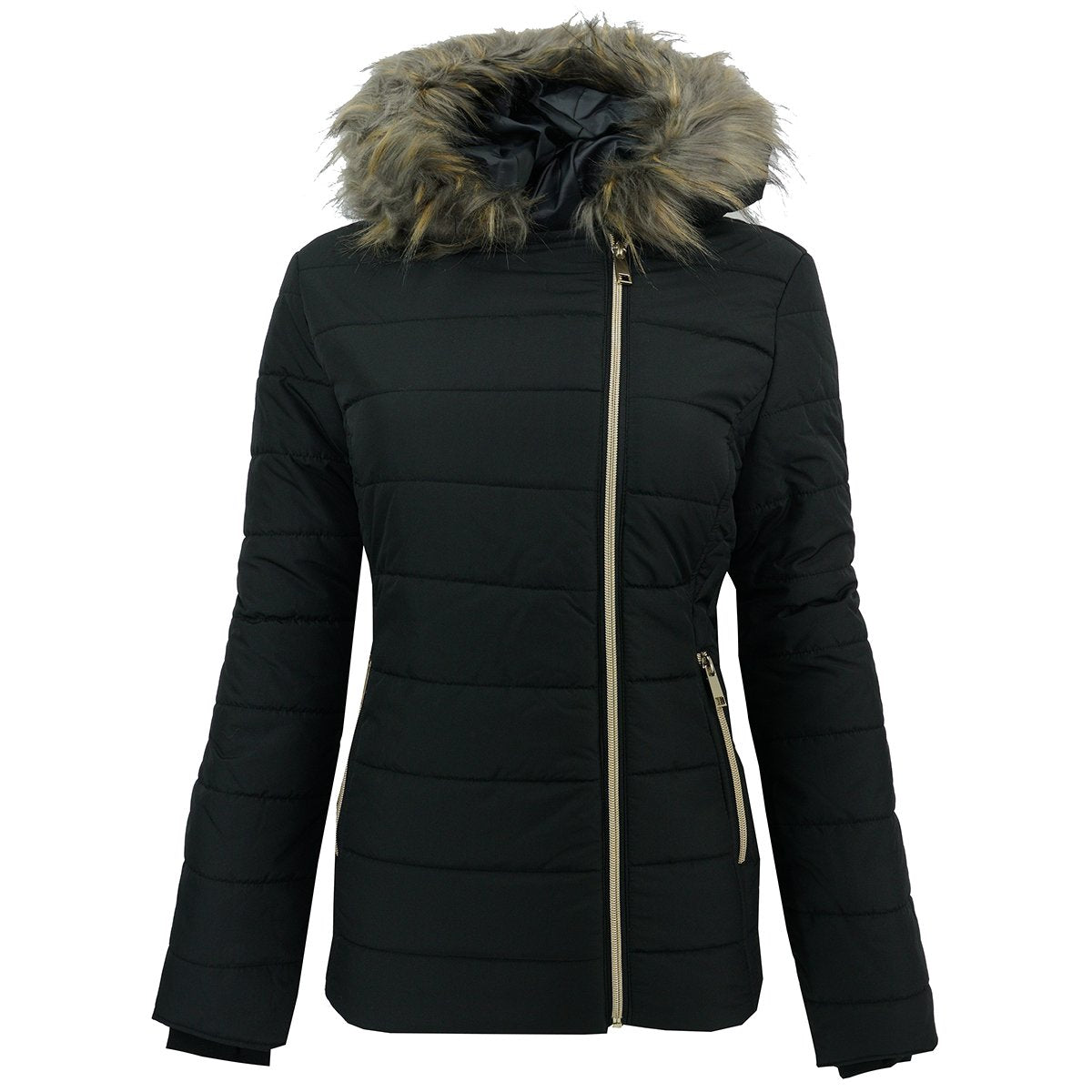 Chic faux fur beautifully enhances the cozy comfort of this hooded puffer coat from Maralyn & Me. Size up for a adult fit!