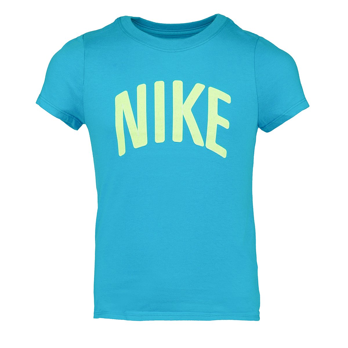 The Nike Girls' Athletic Cut Logo T-Shirt is made with soft cotton for everyday comfort and lasting wear.