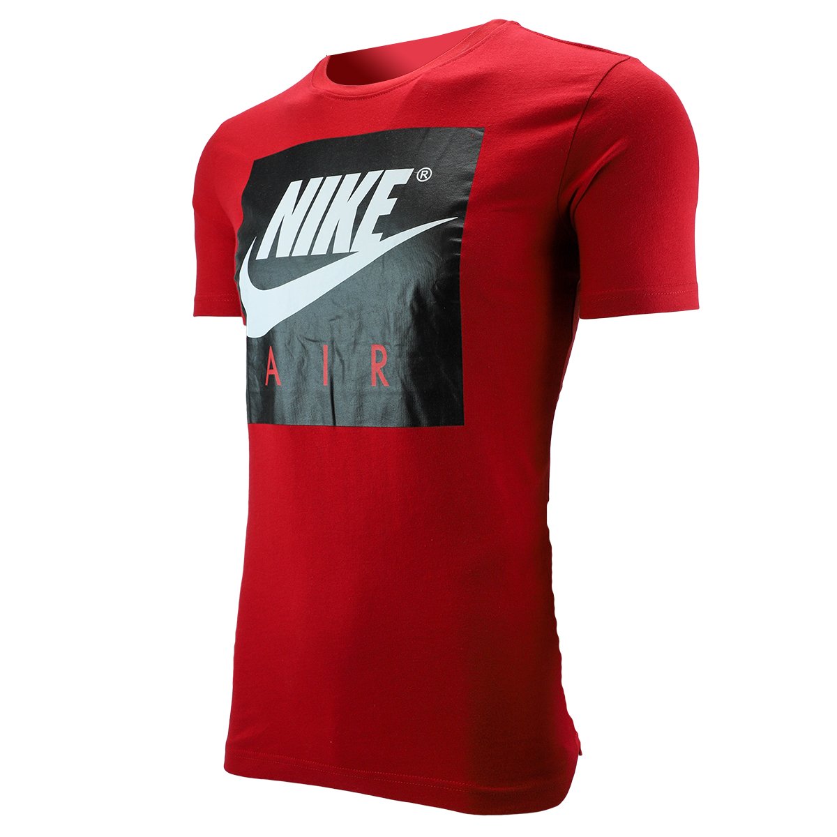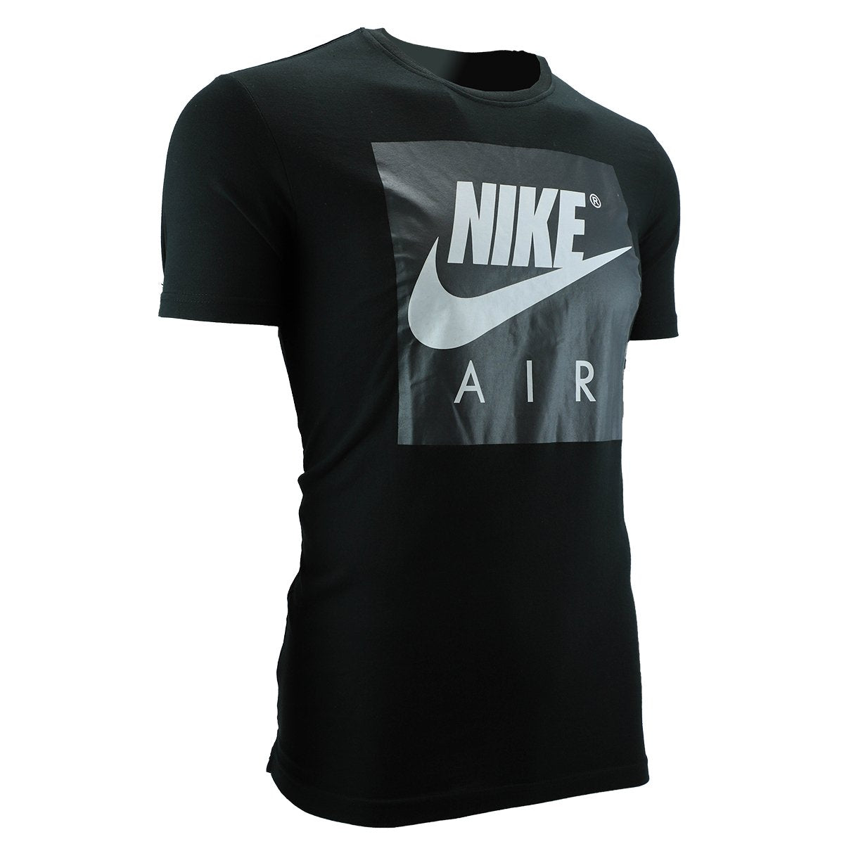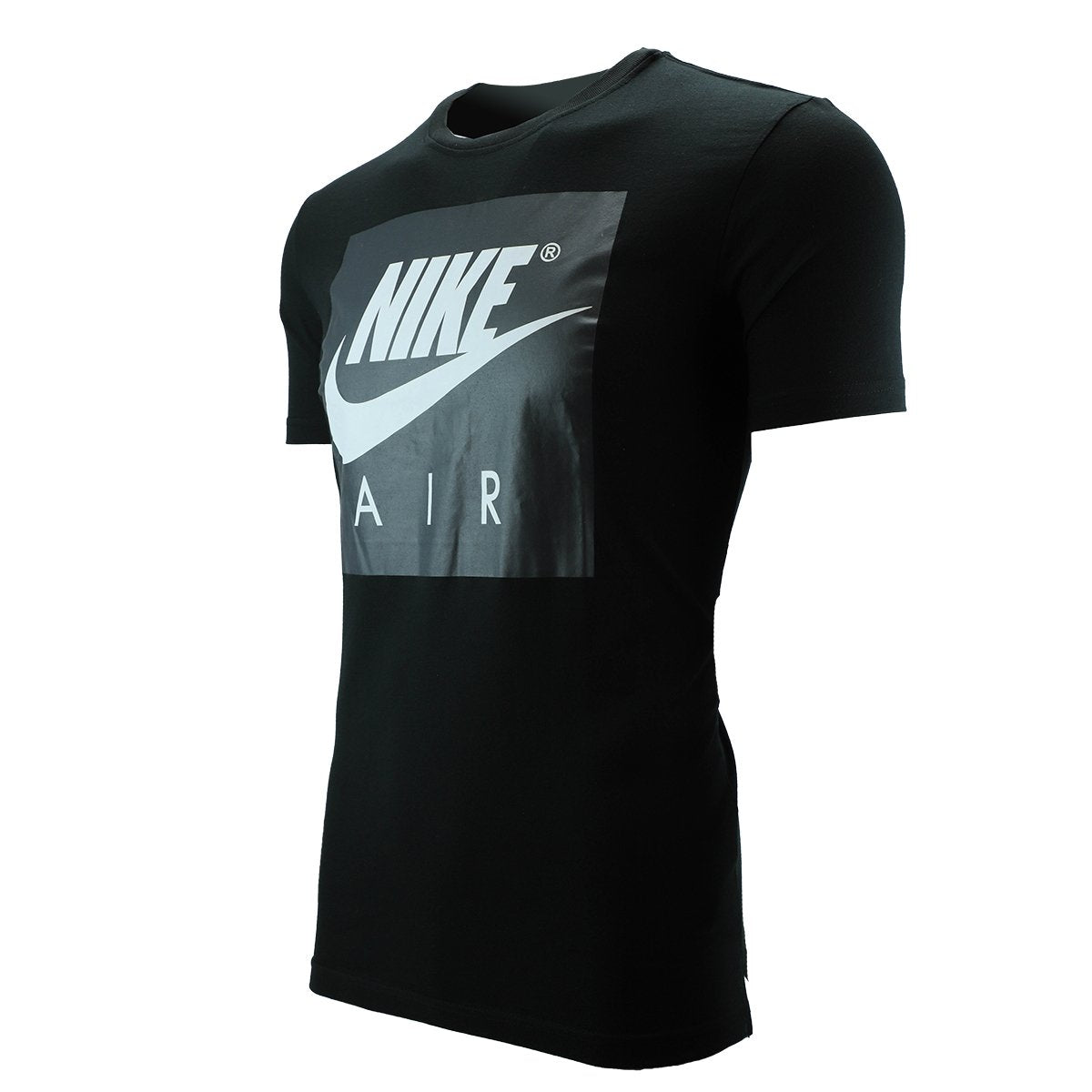 A glossy Nike Air box logo brands the chest of a soft cotton T-shirt cut with a drop-tail hem for coverage in back.