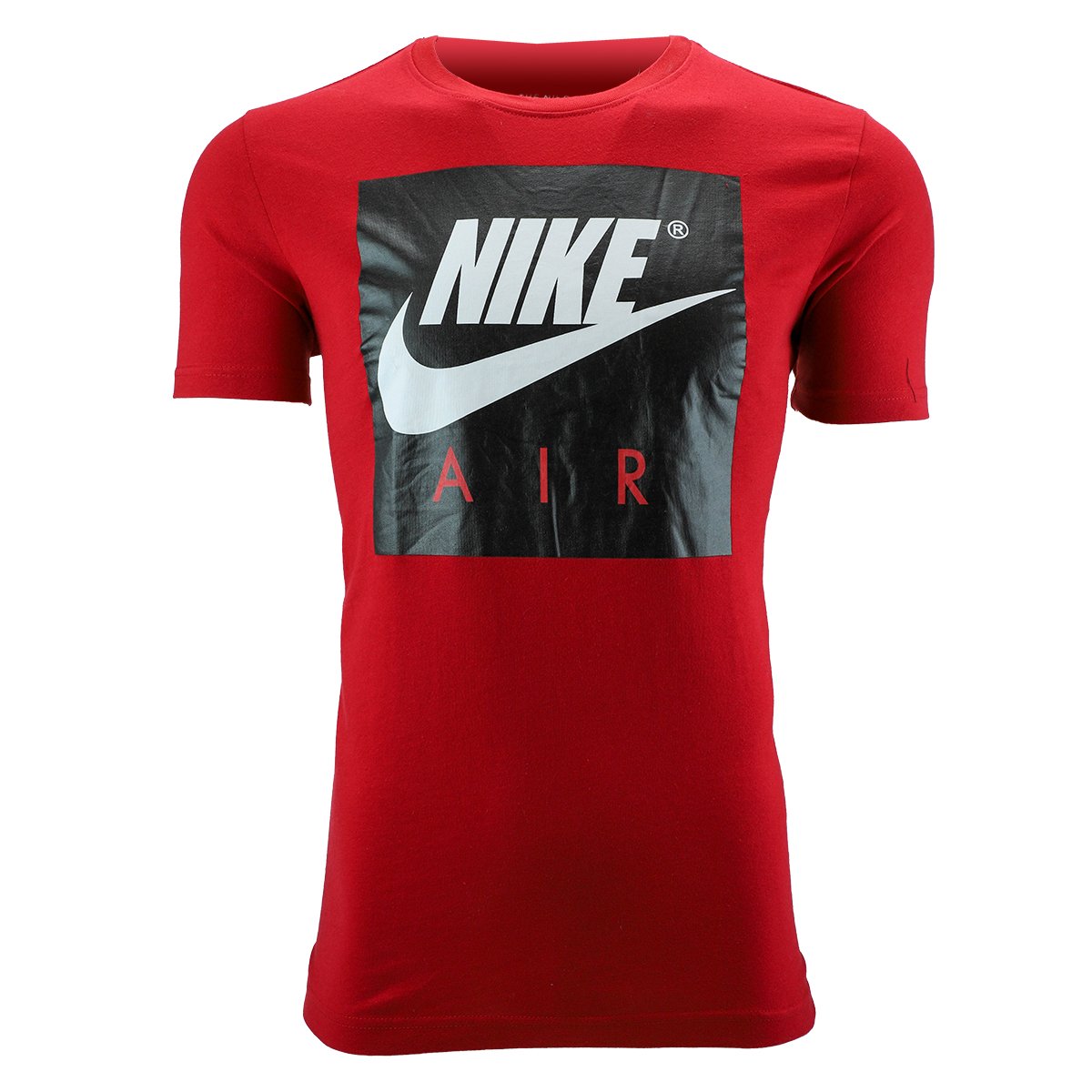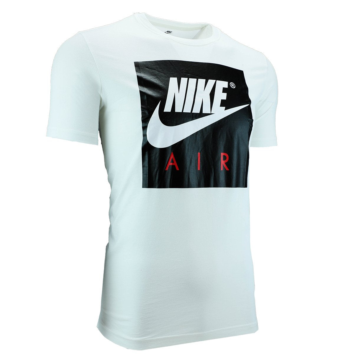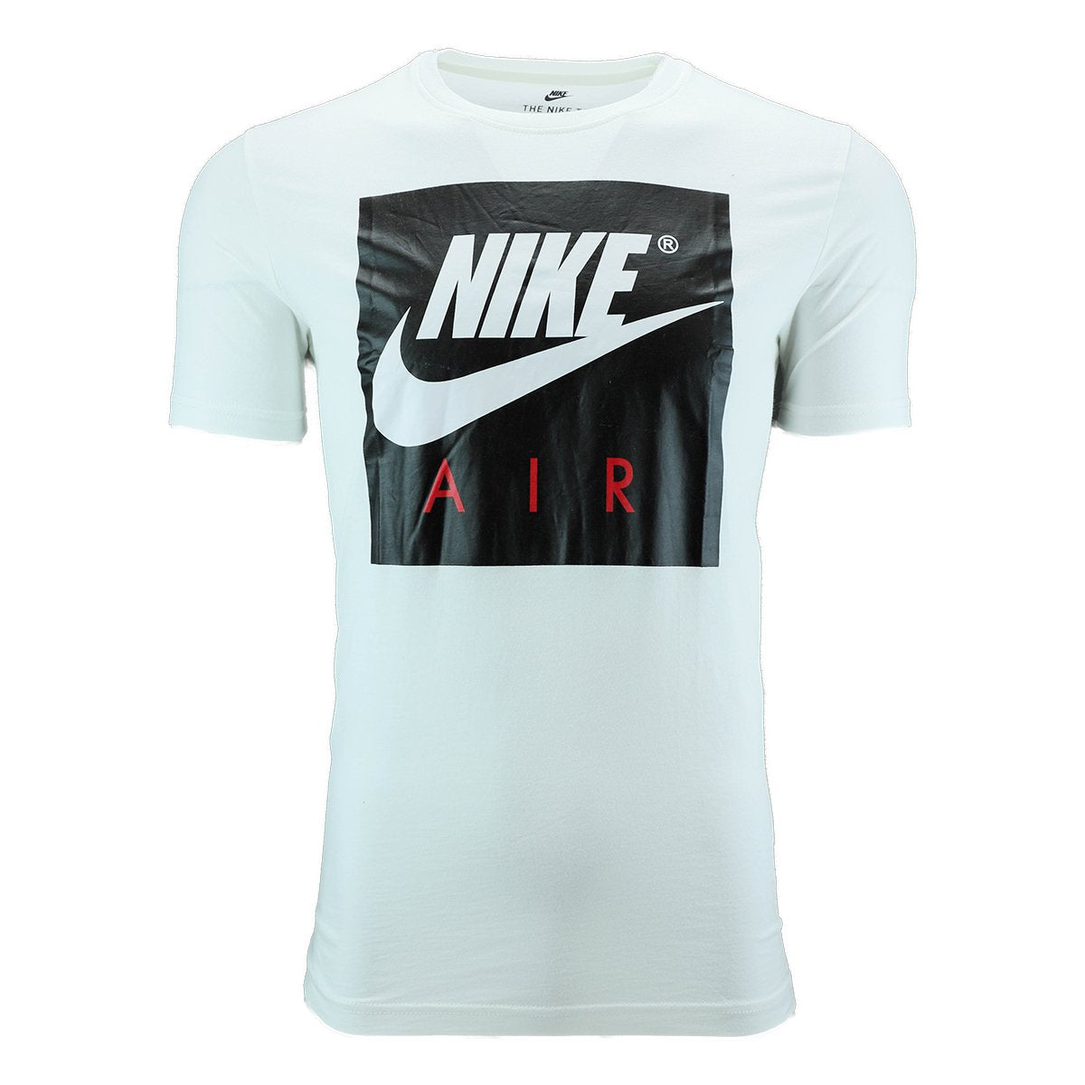 A glossy Nike Air box logo brands the chest of a soft cotton T-shirt cut with a drop-tail hem for coverage in back.