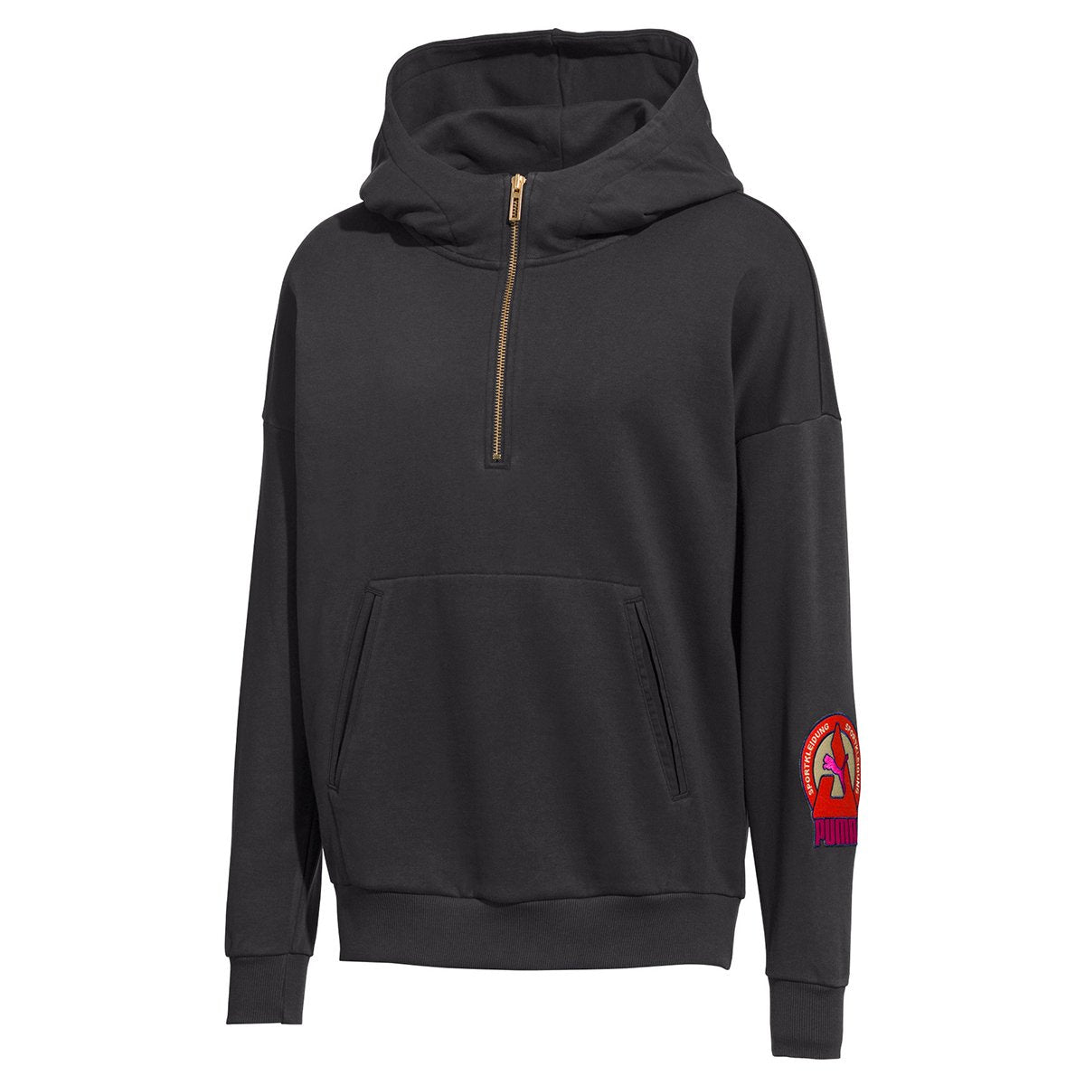 Simplicity and functionality are cornerstones of Scandinavian design and HAN KJOBENHAVN takes them to an extraordinary place. The third PUMA x HAN KJOBENHAVN collection plays on the theme of inside-out seams, linings and hanging pockets are unexpectedly and uniquely exposed, while rich fabrics and handcrafted details keep things clean and elegant. Elevate your street wear from casual to cool in this ultra-hip, HAN KJOBENHAVN-designed hoodie featuring chunky gold metal zip closure, retro-coloured badge branding and a cosy, relaxed fit.