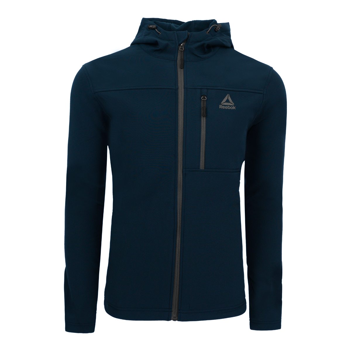 Reebok delivers strength and endurance in style with this no nonsense jacket. Jacket has zippered chest pocket and two zippered hand pockets with the delta Reebok Logo.