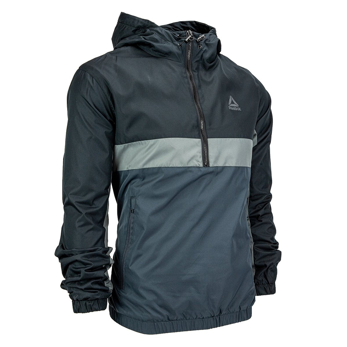 Step out in style sporting the Reebok Men's Pullover Dooby Jacket. Polar fleece lining provides extra warmth. Wind and waterproof fabric keeps you protected from the elements.