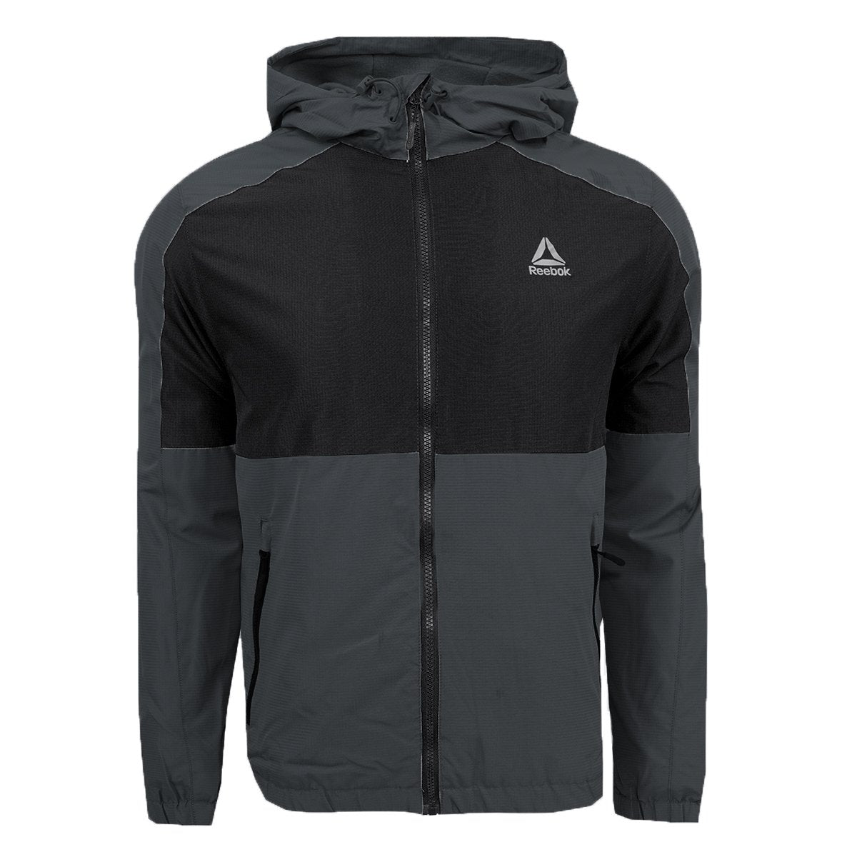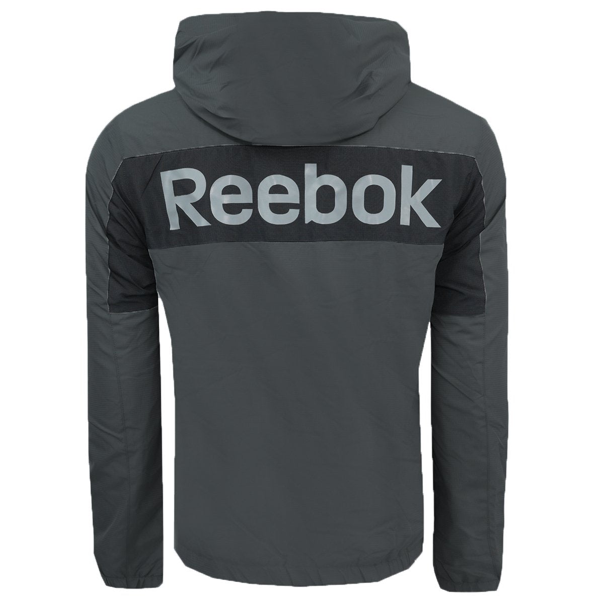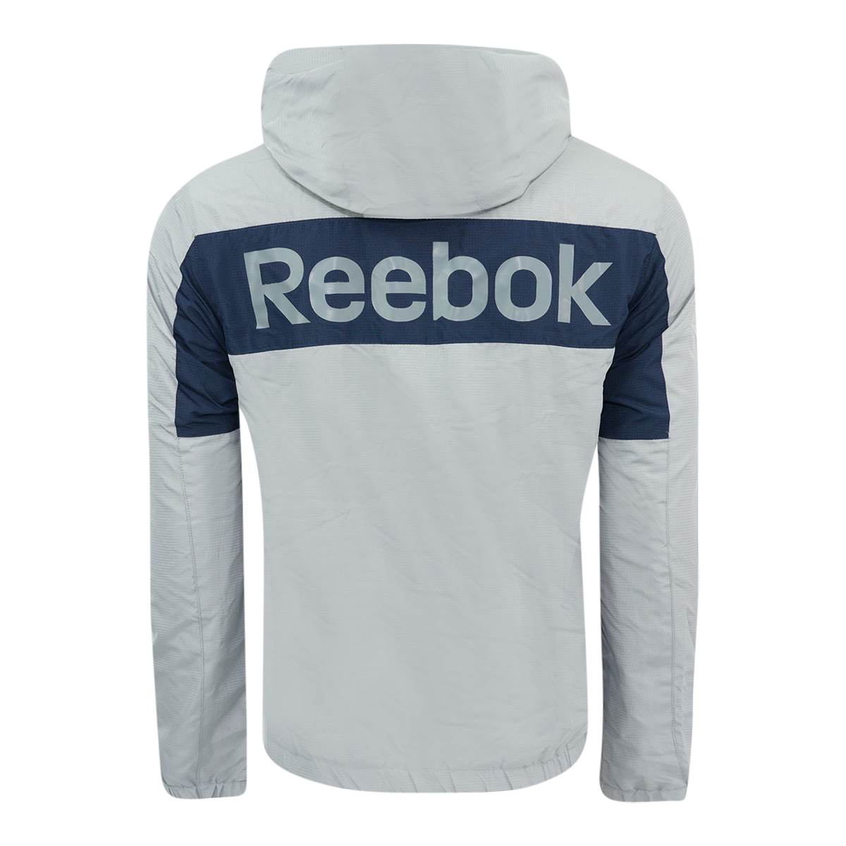 This full zip Reebok Windbreaker comes with a comfortable fleece lined interior, hood and two zippered pockets that will keep you warm on those cool windy days.