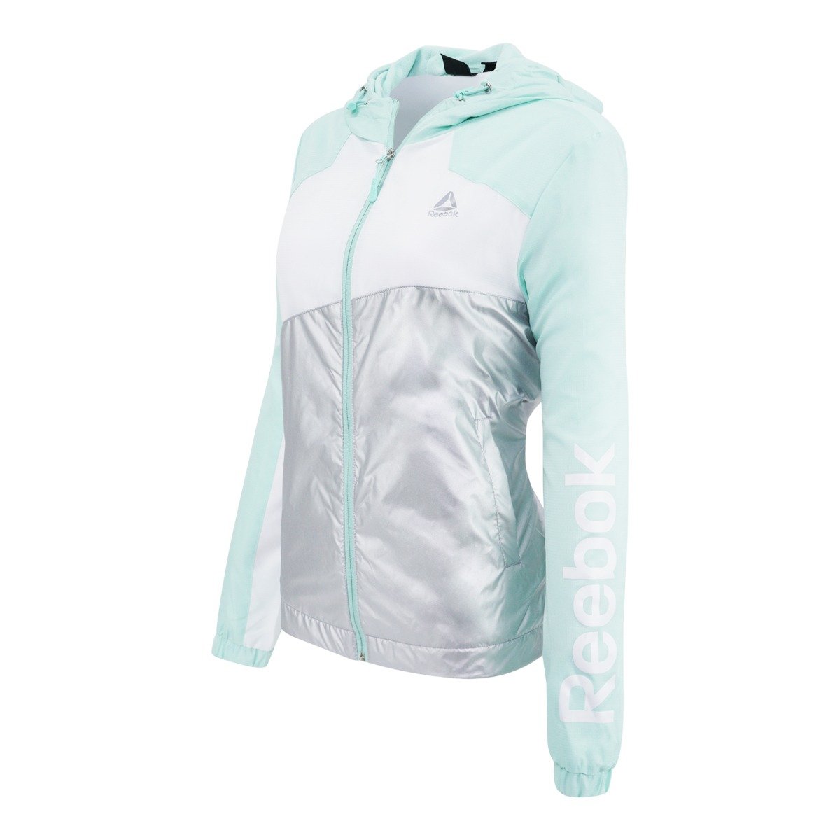 This women's windbreaker jacket by Reebok with a Fleece lining on the inside, will keep you warm and in style with the great colors provided.