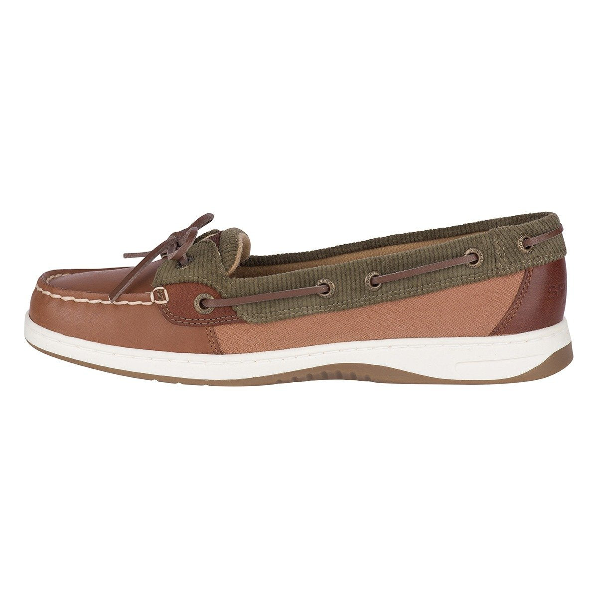 Your favorite light, sleek and more refined version of the classic boat shoe, now with varsity prep details and cool metallic shine to take you from a day on the water to a glitzy night on the town.