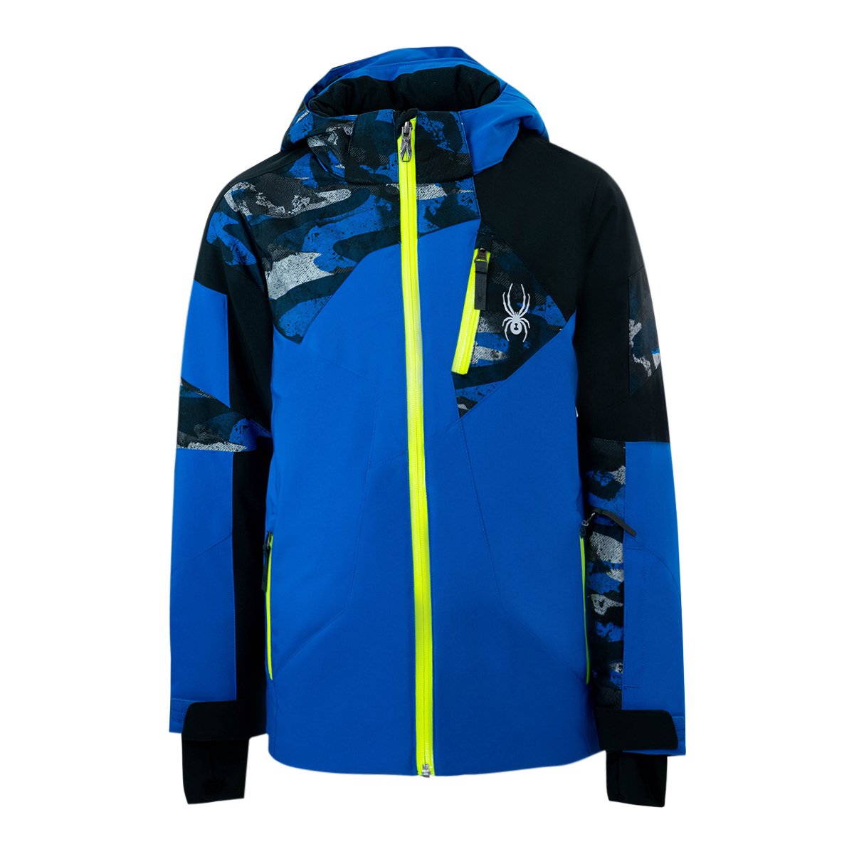 A go-to classic for the alpine skier, the Leader comes in a collection of new prints that pay homage to the best of Spyder's signature classics, and with the same dependable features that continue to make this jacket a best-seller. A removable hood with gaiter, powder skirt with snaps and elastic grippers, along with adjustable, gusseted cuffs and a wrist-warming sleeve with thumb holes make certain the only thing old man winter will get off you is a face full of powder.