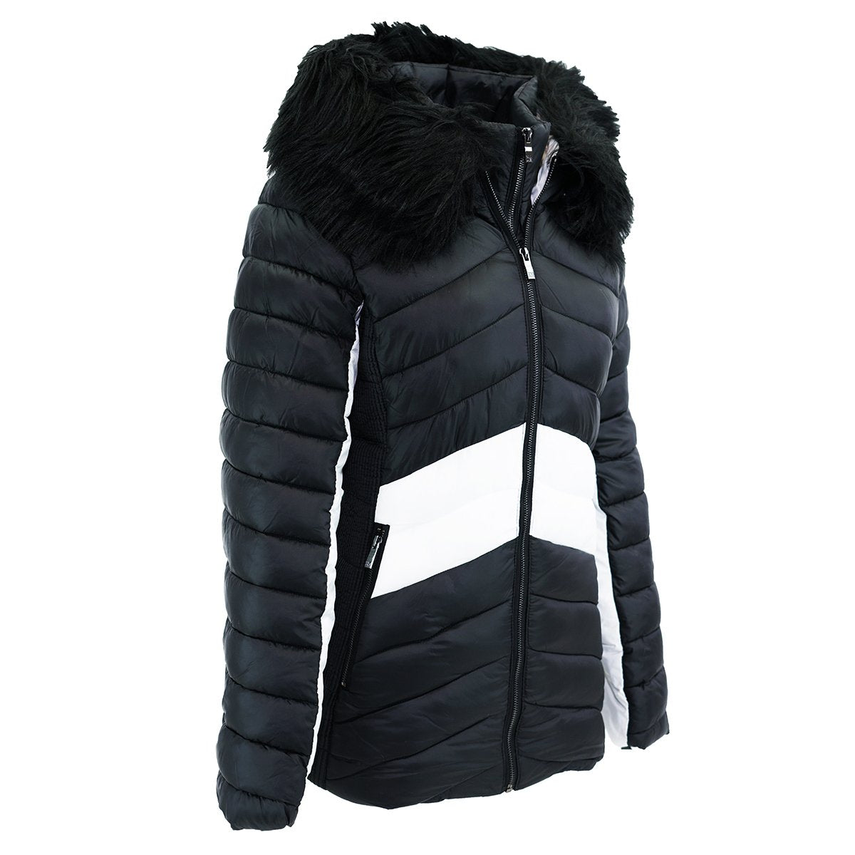 Stay warm in style this season with this luxurious puffer jacket, designed with chic faux-fur surrounding the hood.