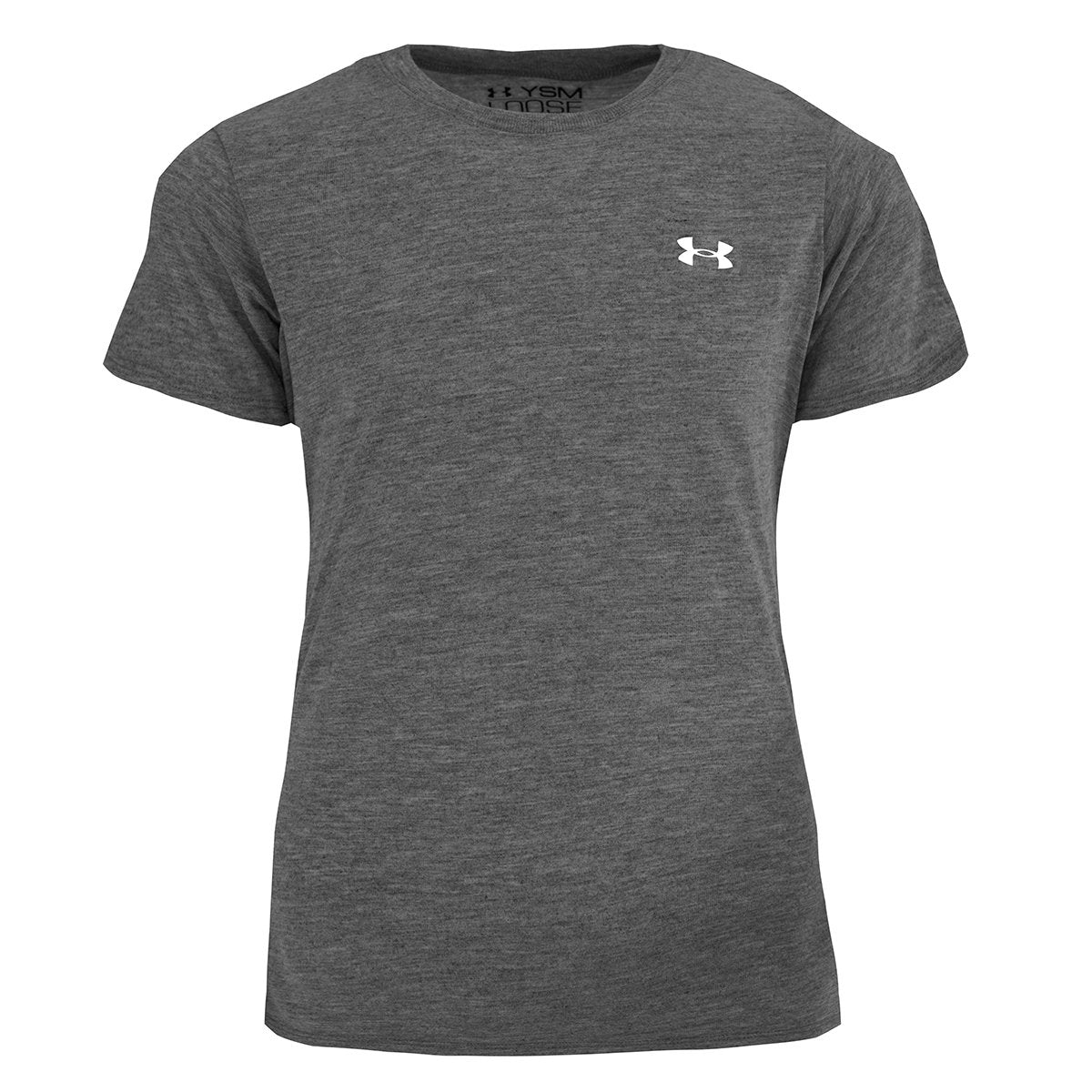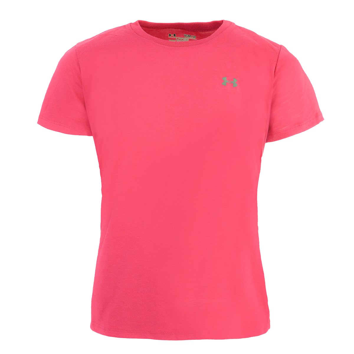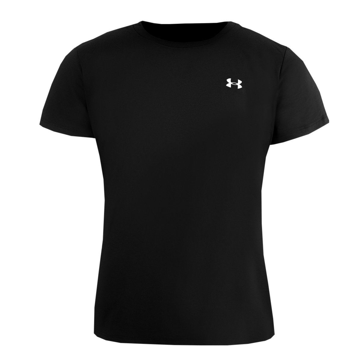 The Under Armour Girls’ T-Shirt delivers the look and performance she needs to stand out above the competition. Incredibly lightweight UA Tech fabric combines quick-drying properties and a super soft feel for all-day comfort. Moisture-wicking and anti-odor technologies combine to keep her feeling light, dry, and fresh. Whether she is headed out with friends or to practice, send her out in style.